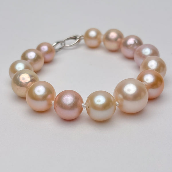 Grown in the fresh waters of Japan's Lake Kasumi ga Ura these pearls are exemplary of the Japanese art of slow and detail oriented beauty. We work directly with the farmers of Japan Kasumi pearls, and have for decades. Japan Kasumi pearls are known for their characteristic rippled surfaces, but they can also be found with smooth skin. They are prized for their metallic luster and rainbow overtones, and they can also be soft glowing in light champagne tones. They are a truly unique and prized part of the pearl world, and we are honored to bring them to you.