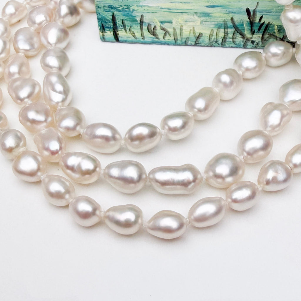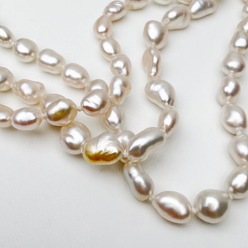 Endless necklace of white South Sea Keshi pearls